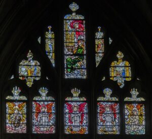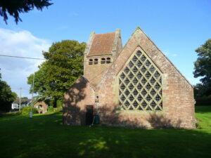 A second example (also commissioned by a wealthy landowner) is the church of St Edward the Confessor at Kempley in the Forest of Dean which was built in the early 1900s to a design by Randall Wells and includes the so-called “Jam tart” window. Some of the internal woodwork was made at the Waals workshop in English oak.