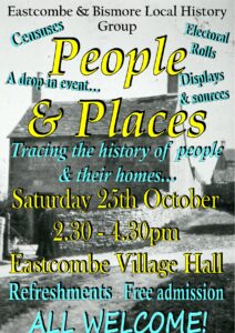 This will be a drop in exhibition type event (no slideshows) where the focus will be people & houses in Eastcombe & Bismore.